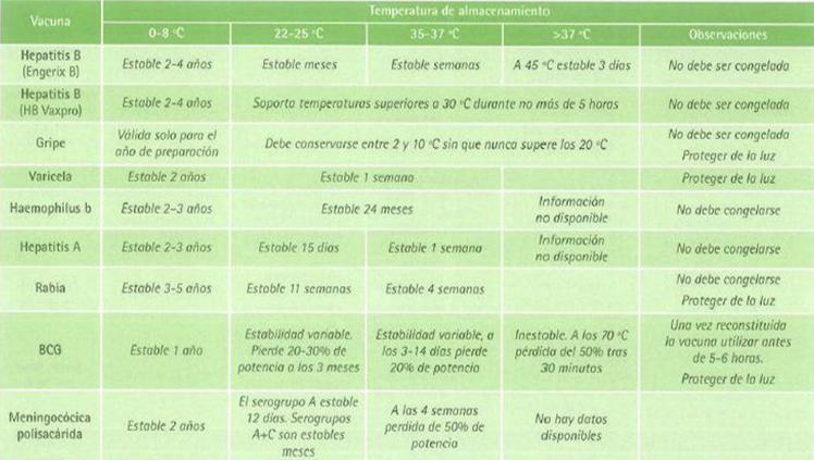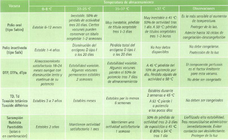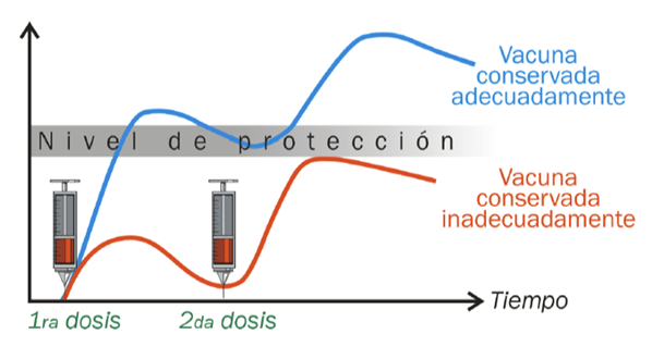 El éxito o el fracaso de un sistema de inmunizaciones depende de la calidad y potencia inmunológica de las vacunas utilizadas. Cuando las vacunas se salen de la temperatura de almacenamiento tiene un tiempo muy corto en el que comienzan a perder Calidad y potencia Esto se describe dependiendo a que temperatura es sometida la vacuna el % de potencia que se pierde o si se inactivan completamente.