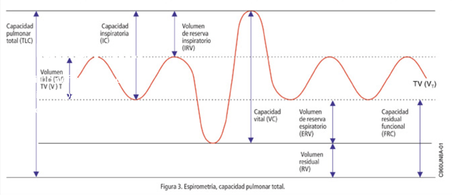 Capacidad vital VC: es la suma de inspiración y espiración forzadas. (VC=VRI+VRE).
