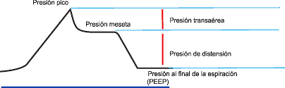 Presión de distención PP: es la presión ejercida únicamente por la carga elástica en los alveolos, muy útil para diferencia patologías se puede visualizar practicando una pausa inspiratoria en un ventilador.